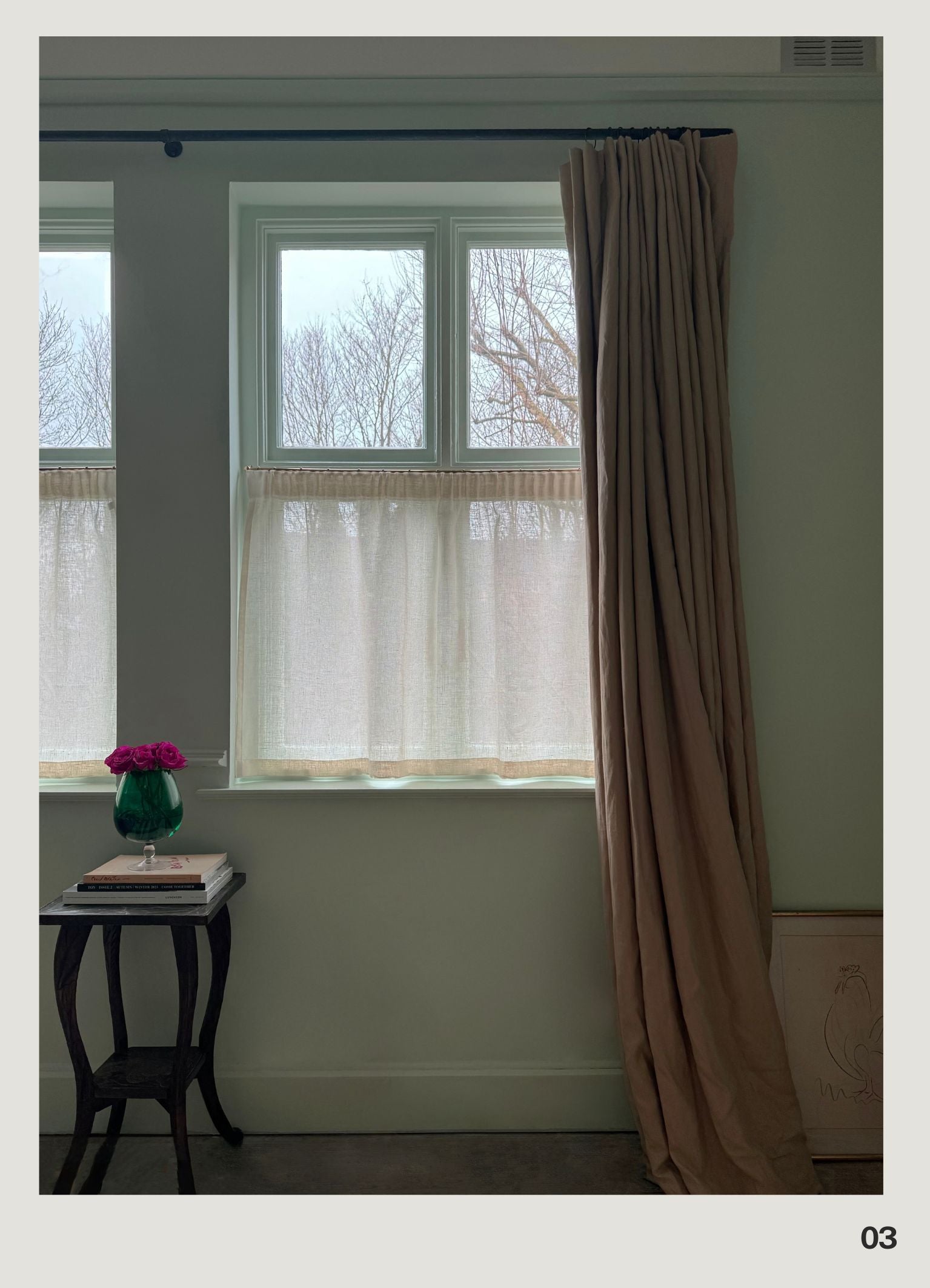 The cafe curtain - lightweight linen with a pleated top
